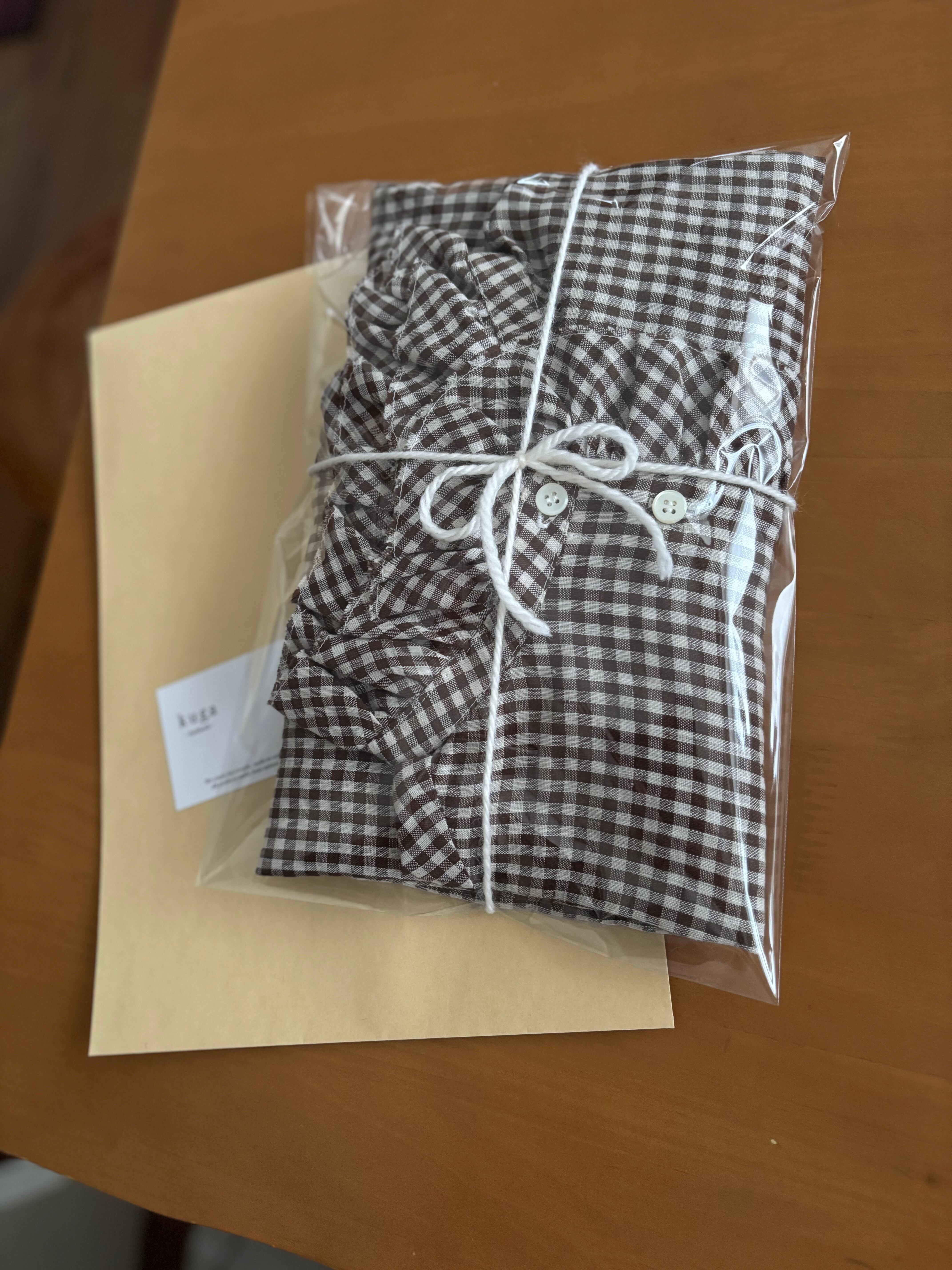 少し太めのフリルの端は断ち切り始末にして軽く仕上げ、ナチュラルな素材感が際立ちます