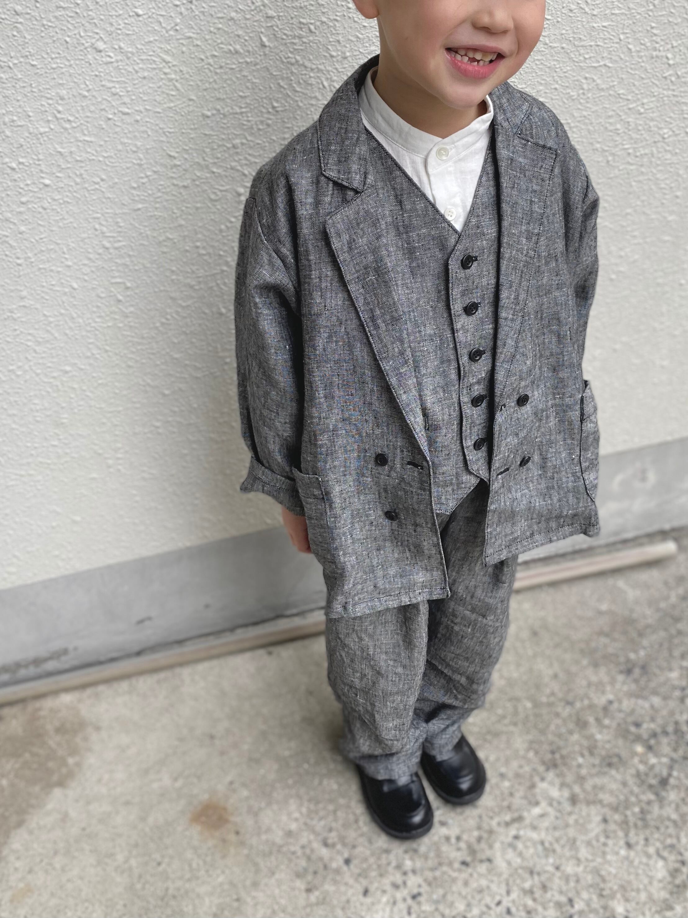 キッズスーツ ブラックシャンブレー 入学スーツ フォーマル テーラードジャケット ツータックパンツ 卒園式 入学式 七五三 結婚式 ダブルスーツ ツーピース 100〜130 送料無料