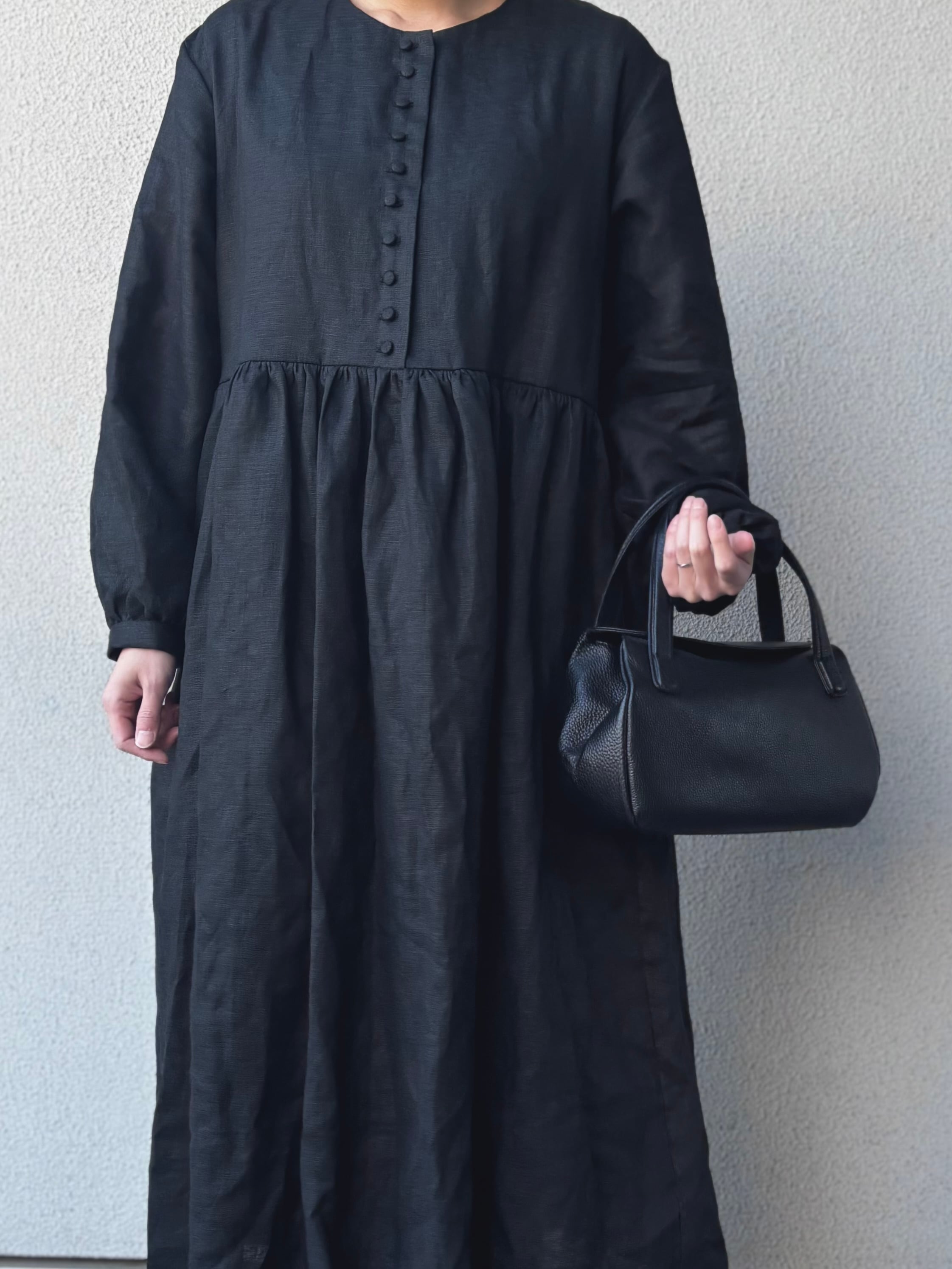 通年着用いただける40番手の生地で、季節やシーンに合わせたおしゃれを楽しめるシンプルなドレスです