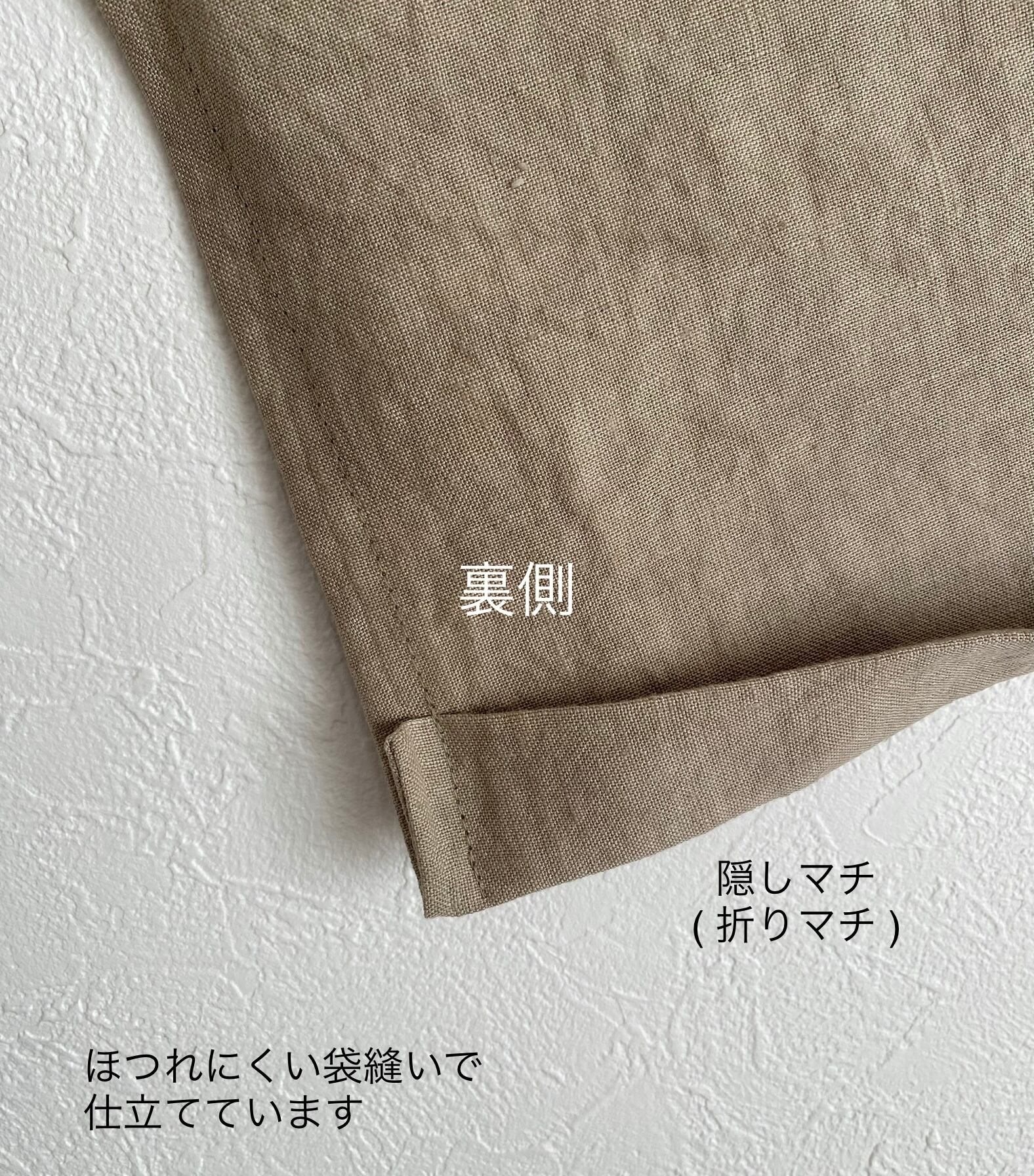 採用した生地は職人さんが手作業で染色、天日干しをした独特のシワ感が魅力的なリネン